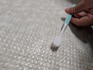 歯ブラシを使って、溝をなでるようにこすっていきます。