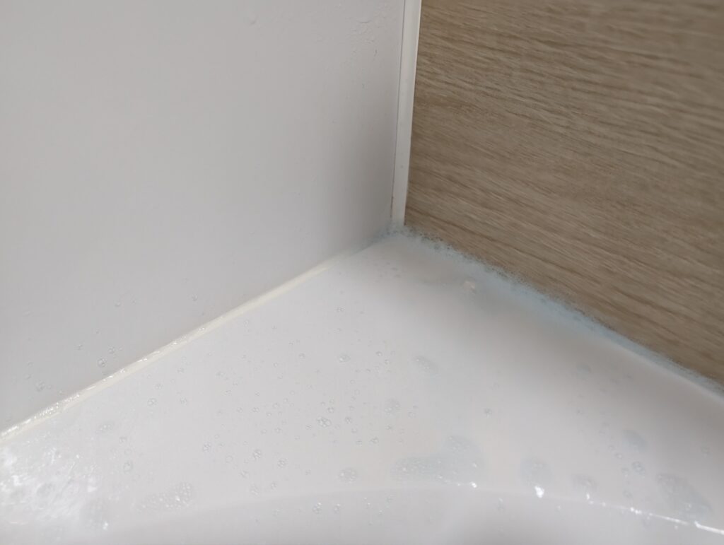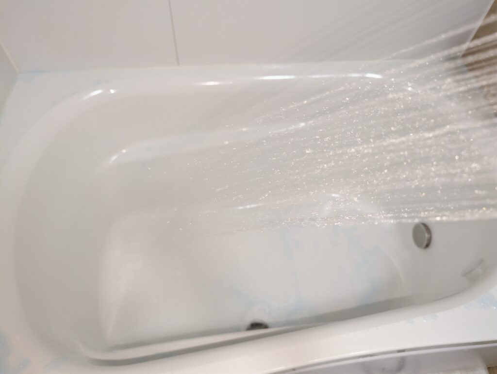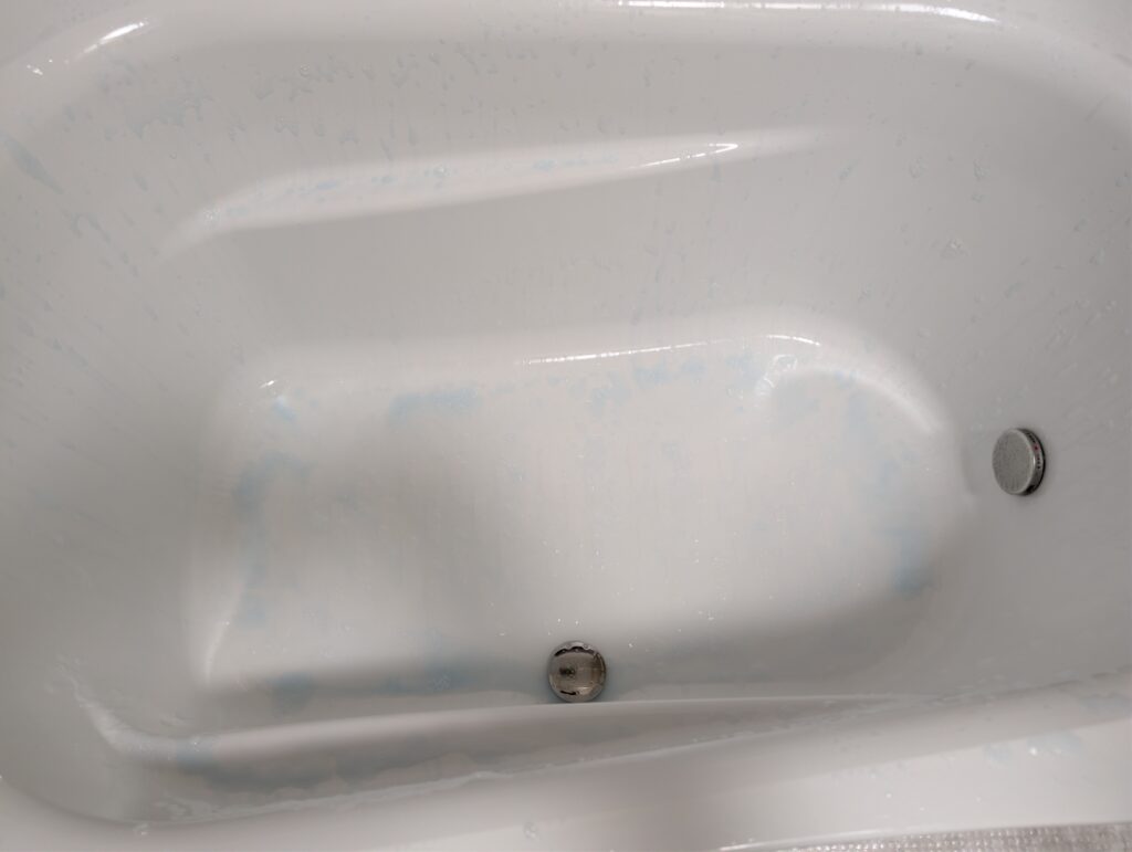 今回は汚れが目立たなかったので見た目では中々わからないのですが、流しながら浴槽の横の部分を触った感触は「落ちているなぁ」と思います。ヌメリは無かった感じですね。