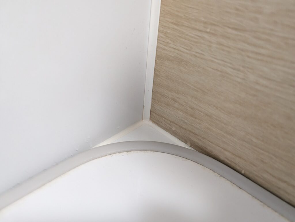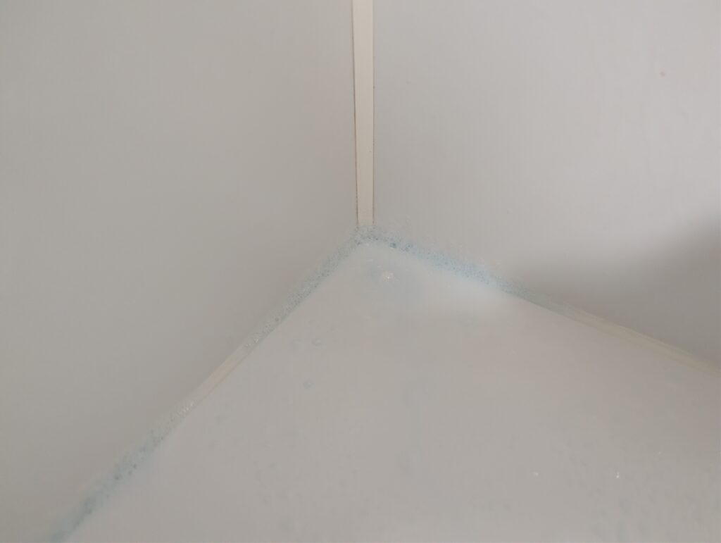 ついでに浴槽のパッキンの部分がピンク汚れが出ていたのでそこにもかけて置きました。