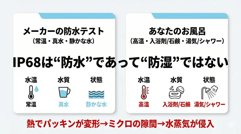 「防水(IP68)」は万能ではない(特に“湯気・熱・経年劣化”に弱い)